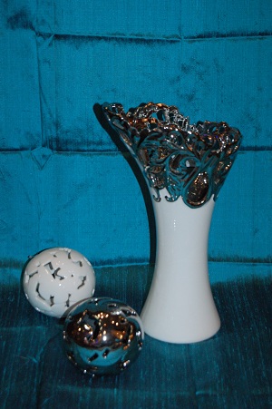 Boule blanche et argent:6,95$ Vase victorien:34,95$ Vase arbre:59,95$